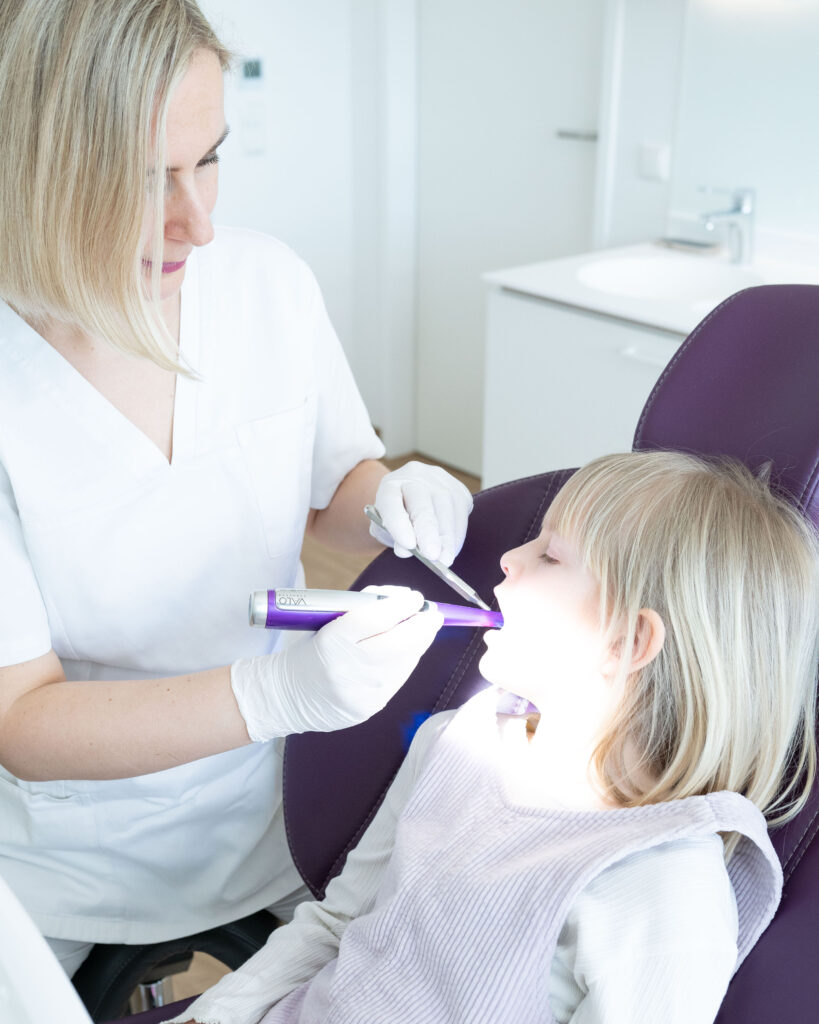 - Fissurenversiegelung: Effektiver Schutz für gefährdete Stellen wie die Kauflächen der Backenzähne.